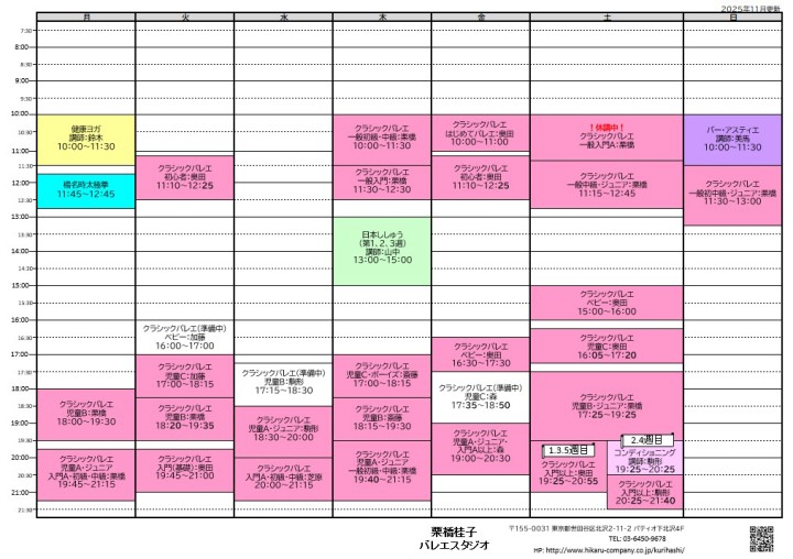 - 高校生以上。基本は勿論、バリエーション、公演出演などを通して総合的なレベルアップを目指すクラス。